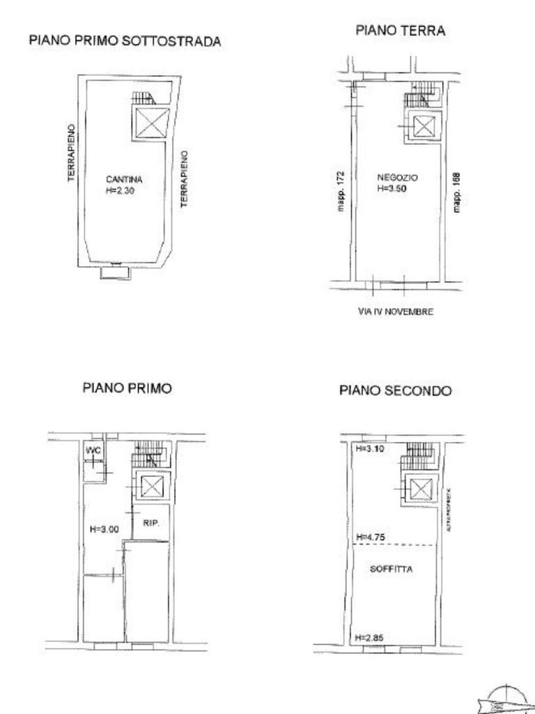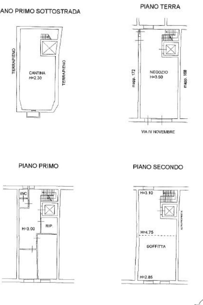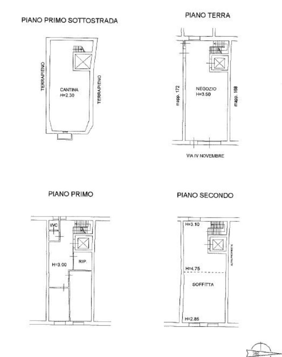 Entrando dal cortile interno raggiungiamo l'ingresso che conduce al piano terra dove troviamo un ampio negozio con vano ascensore.
