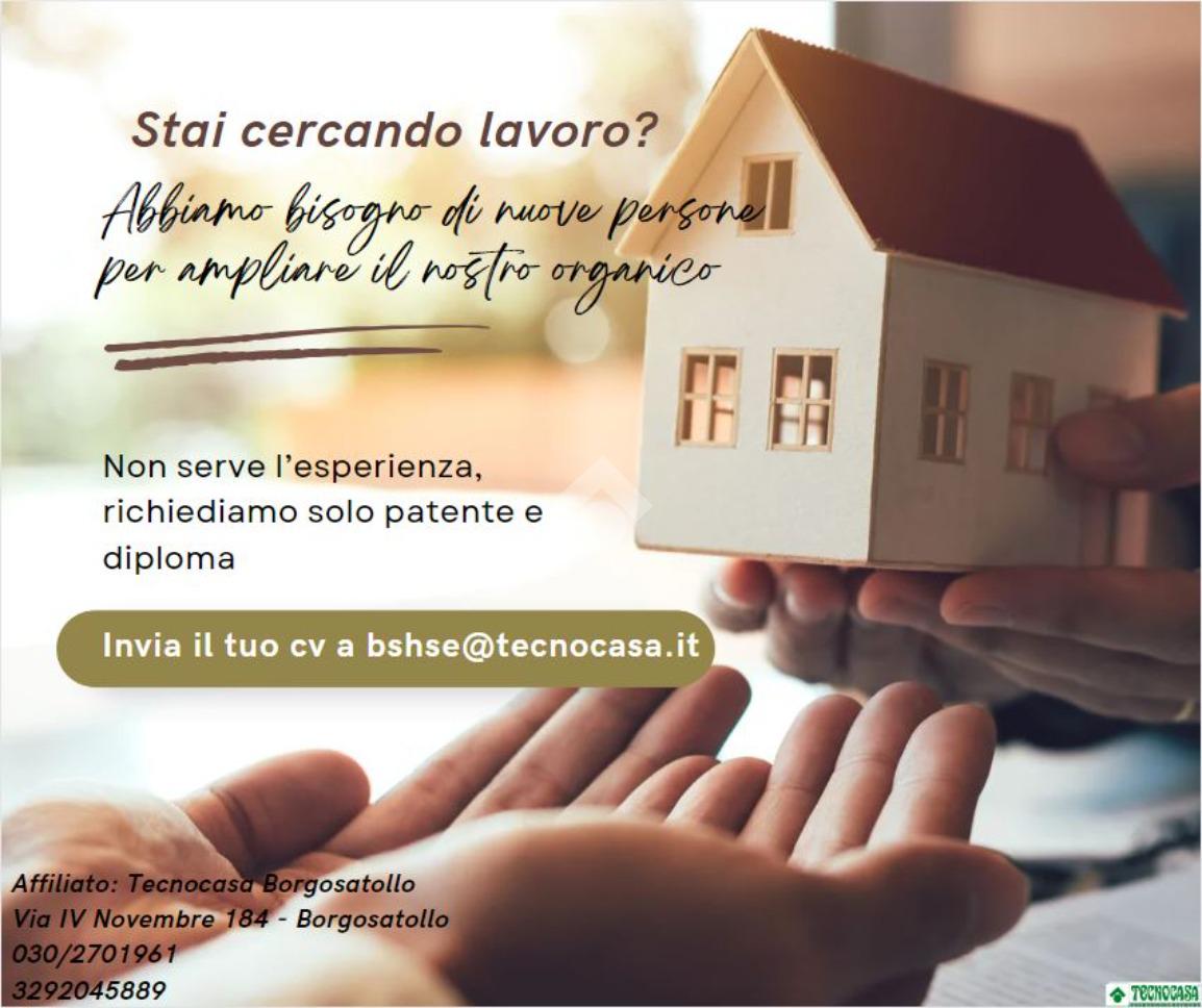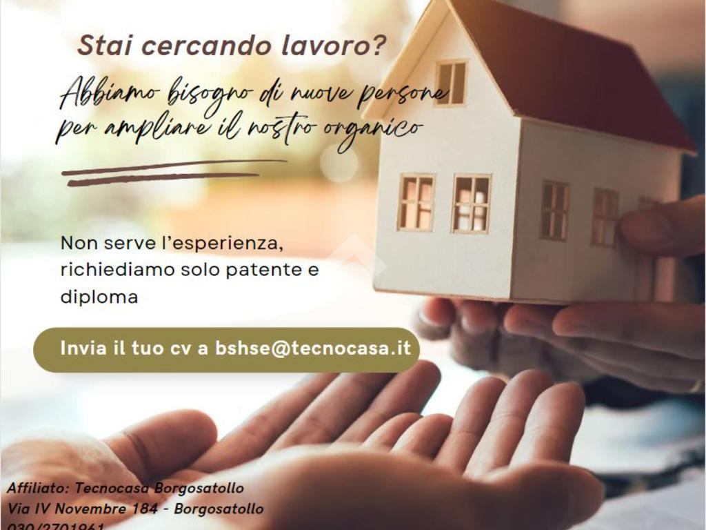 CERCHI LAVORO? Cerchiamo n° 2 ragazzi/e motivati/e e dinamici/he da inserire nell'ufficio Tecnocasa di Borgosatollo. Offriamo fisso + provvigioni. Sono richiesti patente, automobile e diploma.